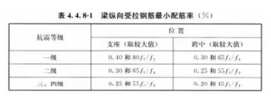 2、纵向受拉钢筋的最小配筋率不应小于表4.4.8-1规定的数值。